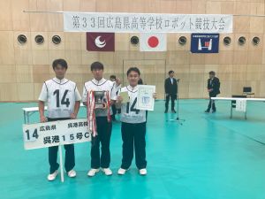 優勝チーム「呉港15号C」のリモコン操縦を担当した情報システム科3年の 森本 輝くん(安浦中学校出身)は、「練習の成果を本番で出せて良かったです。全国大会ではさらに精度を高め、上位入賞を目指したいです。」と力強く語っていました。