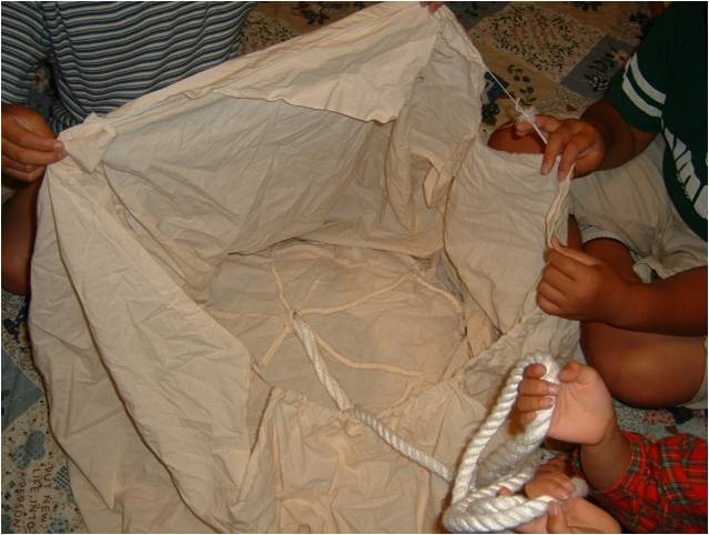 赤ちゃんの入っている羊膜とへその緒を 分かりやすく作られたものです。 講演会でも見せて下さいました。 |