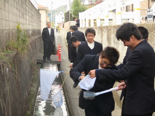 作業服に着替え、日本愛玩動物教会の方から指導を受けると、さっそく作業を始めます。