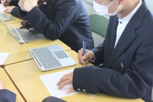 最終日は志望理由書の作成を行います。希望する企業の特徴や独自の技術を調べ、志望理由をまとめて文章を仕上げます。ここでも担任・副担任による添削を受けて何度も書き直します。一人一人が自分の将来について真剣に考えるきっかけとなったようです。