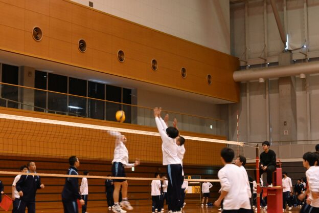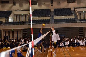 最後に行われたのは、エキシビジョン・マッチ。総合優勝チームと男子バレーボール部が戦います。