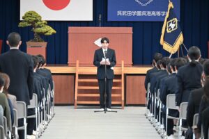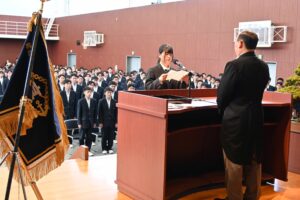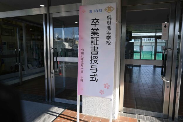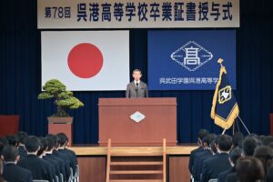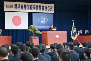 3月1日(日)第78回卒業証書授与式 3月1日(日)、第78回卒業証書授与式が執り行われました。 普通科、機械科、情報システム科合わせて179名に卒業証書が授与されました。 校長式辞 理事長訓辞 来賓祝辞 教育後援会会長挨拶 送辞 答辞 厳粛な雰囲気の中で、式が挙行されました。 式の後は、各クラスで最後のホームルームです。 クラスメイトとの最後の時間を過ごしました。 呉港高校を巣立った皆さん、新しい環境でも、明るく元気に進んでいってください!