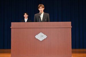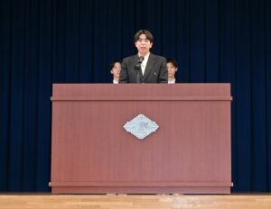生徒会長から激励の言葉があり、