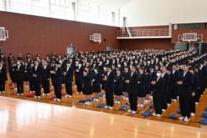 3月13日(金)、全国大会壮行式と3学期終業式が行われました。