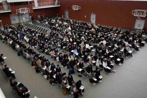 3月20日(金)、入学準備説明会が実施されました。4月から呉港高校に入学する新入生が、様々な手続きや教科書、教材の購入を行います。
