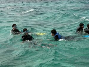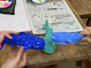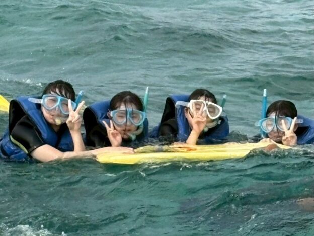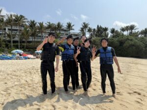 4月10日修学旅行第1団3日目の様子 4月10日、第1団は修学旅行3日目を迎えました。午前中は「むら咲むら」にて文化体験を行い、ジンベエザメのフィギュア色付けなどを通して沖縄の伝統や芸術に触れました。午後は場所を移し、絶好のコンディションの中でマリンスポーツを実施。透き通るような沖縄の海を舞台に、仲間と共にかけがえのない時間を過ごしました。4日目は第1団の最終日となります。最後まで安全に配慮し、充実した締めくくりにしたいと思います。
