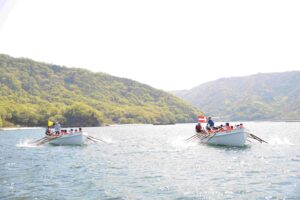 声をそろえ、力を合わせて櫂を漕ぎます。