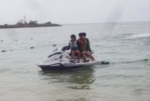 午後はホテルに戻り、待ちに待ったマリン体験へ。少し水温は低かったものの、ジェットスキーやシュノーケリングを楽しむ姿が見られました。
