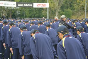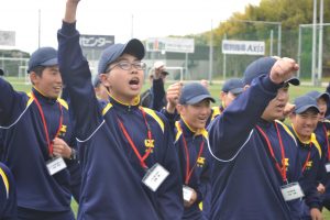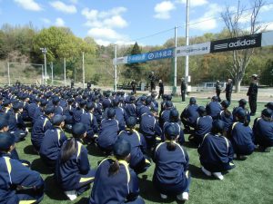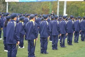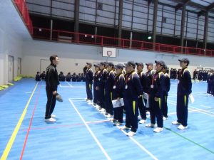 中学校では経験したことのない厳しい指導に最初は戸惑いを見せていた生徒たちでしたが、最後のグループ発表では、各クラス息の揃った動作を披露し、頼もしさを感じました。